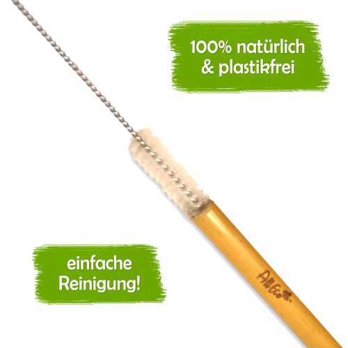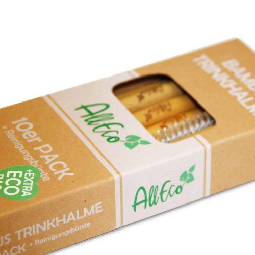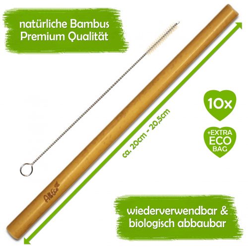 AllEco Bambus Strohhalm 10er Set + Reinigungsbürste + EXTRA Eco-Beutel