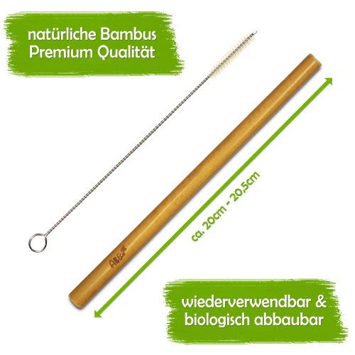 • Bambusstrohhalme aus nachhaltiger Produktion. Wiederverwendbar und umweltfreundlich. Ideal für Heiß- und Kaltgetränke.