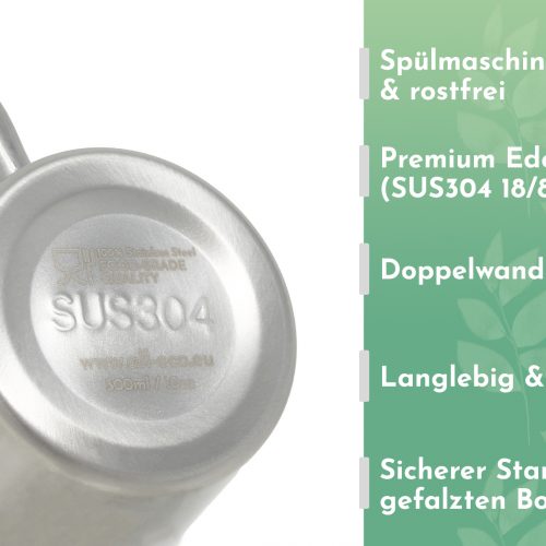 egal ob im Haushalt, als Camping Zubehör oder Ergänzung im Picknickkorb. Mit diesem Edelstahl-Thermobecher hast du eine nachhaltige Alternative aus lebensmittelgeprüftem Thermo Edelstahl in Premium-Qualität (SUS304) Dein treuer Begleiter für das nächste Abenteuer! Der Edelstahl Becher ist rostfrei, spülmaschinengeeignet & garantiert ohne metallischen Geschmack. Super als Kaffee Thermobecher im Camping Zubehör, Outdoor Ausrüstung & für nachhaltige Geschenke.