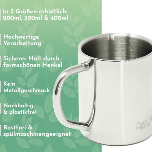 AllEco® Edelstahl Thermobecher mit Henkel