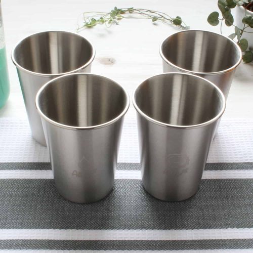 Unsere Metallbecher sind auch prima als Party Cups & Edelstahl Weingläser nutzbar. Unzerbrechlich und umweltfreundlich, als Zubehör im Edelstahl Geschirrset oder Ergänzung zur Edelstahl Flasche. Die Edelstahlbecher Kinder haben eine gefalzte Kante und sind dadurch auch für die jüngere Generation geeignet. Sie haben 4 Symbole zum Unterscheiden und sind super für die Feier oder als Grill Zubehör, Camping Becher Edelstahl & Becher to go geeignet.
